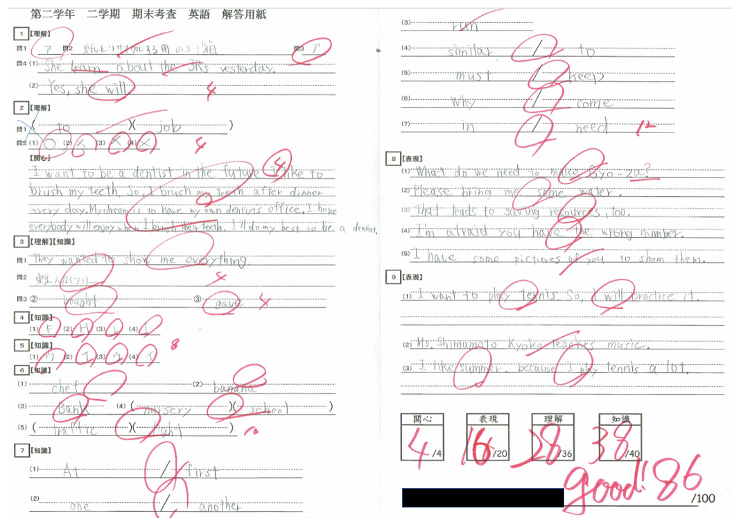 ・TSKに通う前は英語が50点台だったけど、通い始めてからは80点以上を毎回取れるようになった。