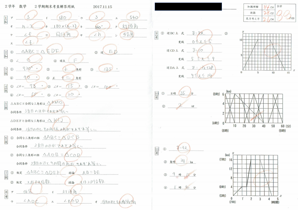 ・数学、見直しをする時間がなかった。計算ミスが3問あった。