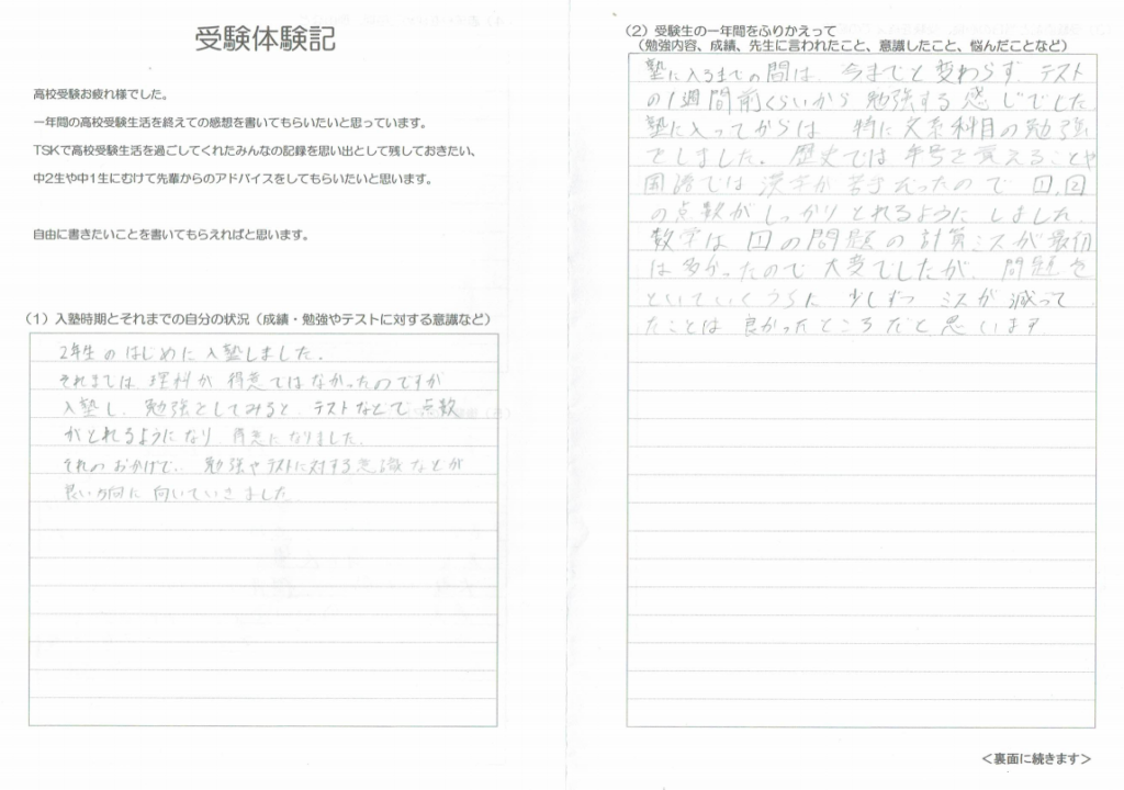 ②:受験生の一年間をふりかえって