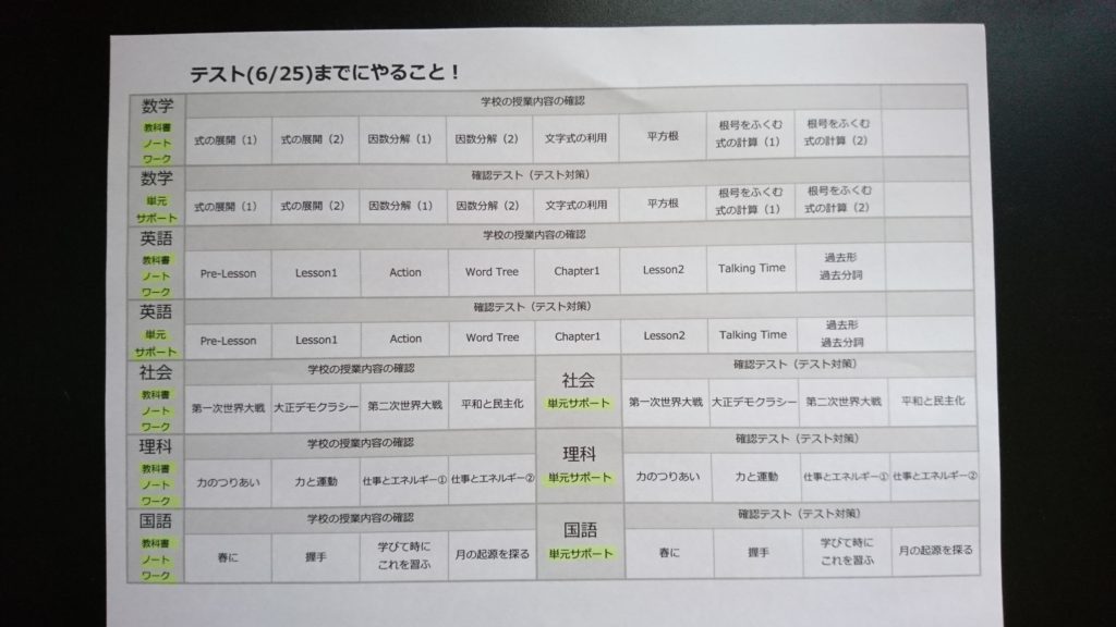 Kくんは6月下旬にテストを迎えますが、生徒によっては6月中旬にテストを終える子もいます。